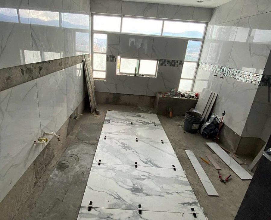 - Enchape muros y piso.